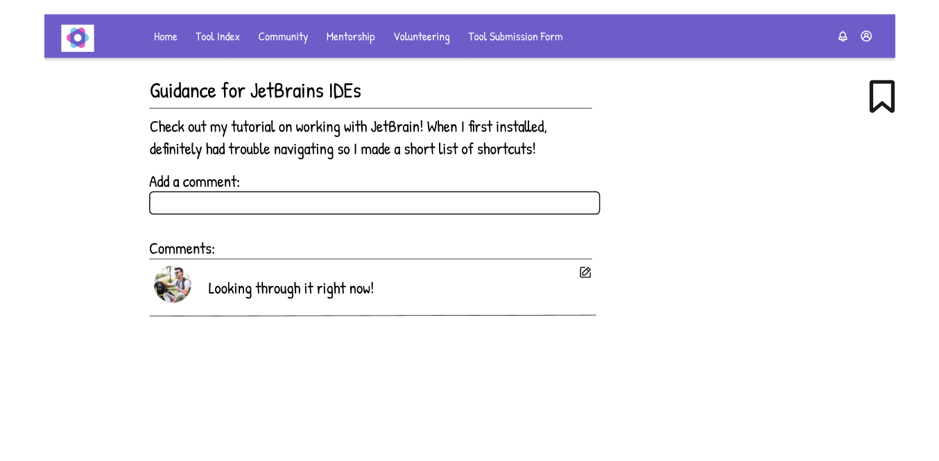 Users indicated a desire for community, hence our high fidelity design of a chat interface for each DIY tool posted. Currently, we are in the prototyping cycle and are iterating based on user feedback. Come back later for more pages!